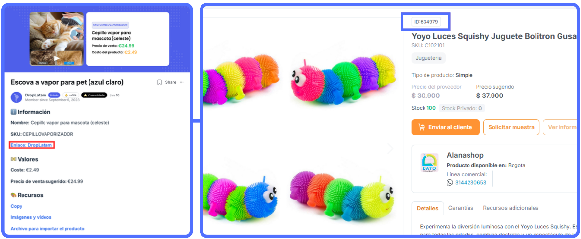 - En la página de DropLatam que se abrirá, copia el ID del producto