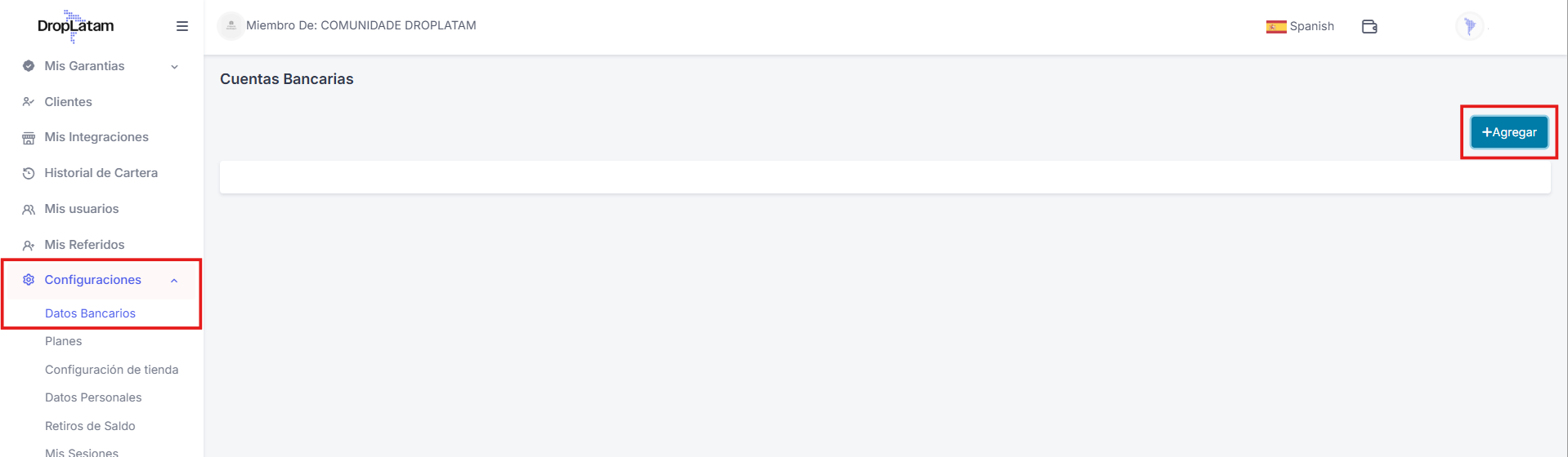 - En la plataforma, ve a la sección "Configuracion" y haz clic en "Datos Bancarios".