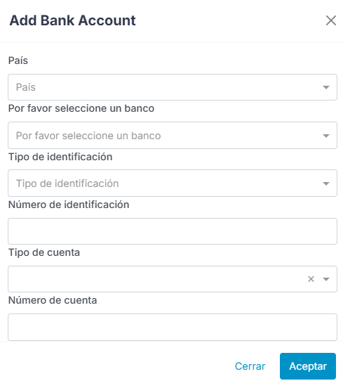 - Para PayPal y Payoneer: En el campo "Numero de cuenta", ingresa la dirección de correo electrónico asociada a tu cuenta.