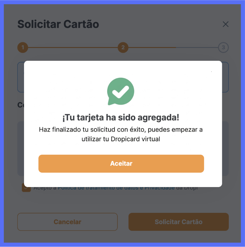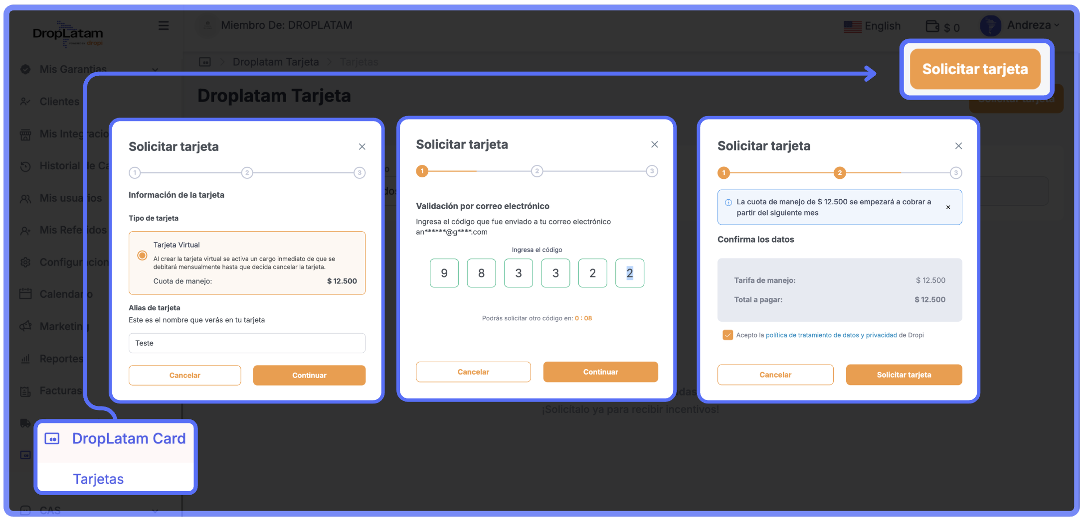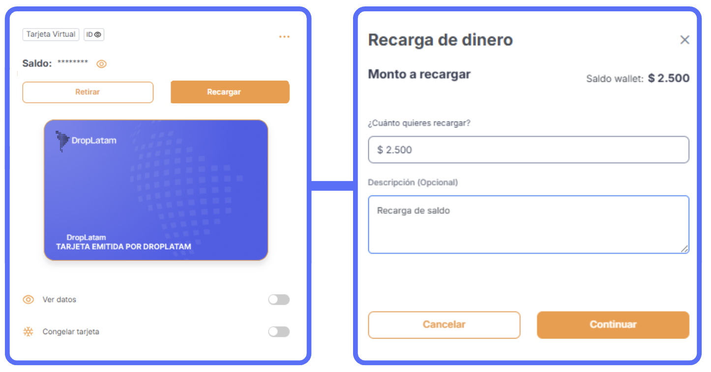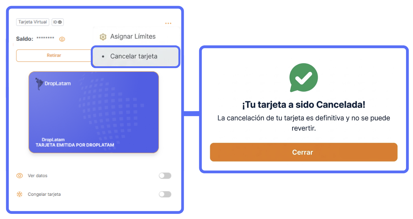 - Accede a DropLatam Card > Tarjetas