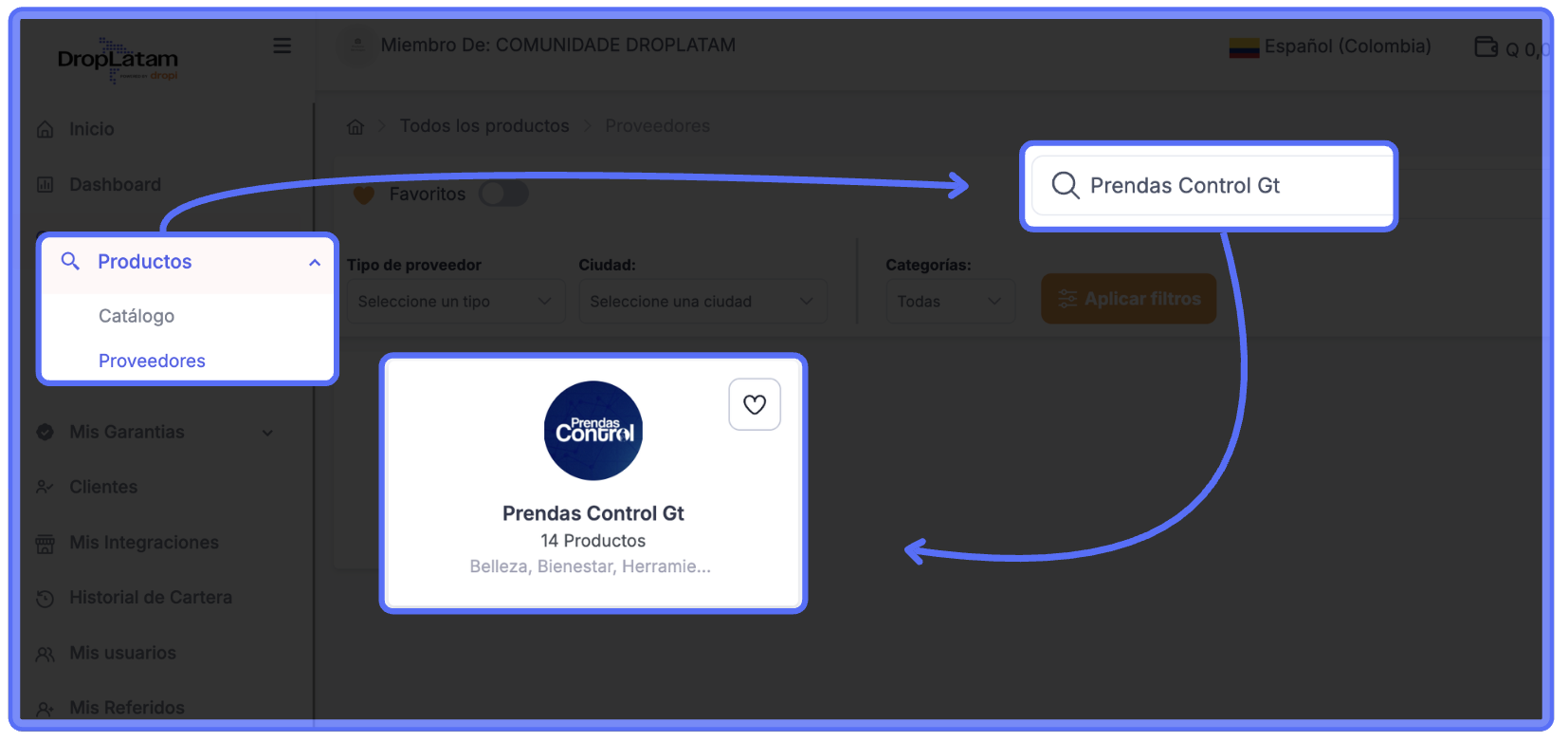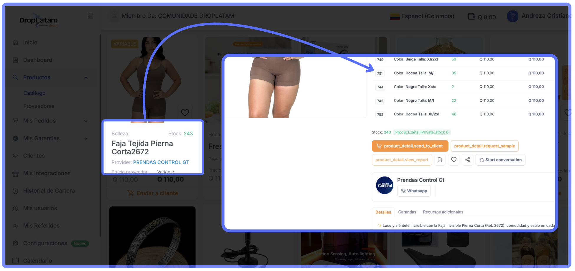 - Accede a la plataforma DropLatam y ve a Productos > Catálogo