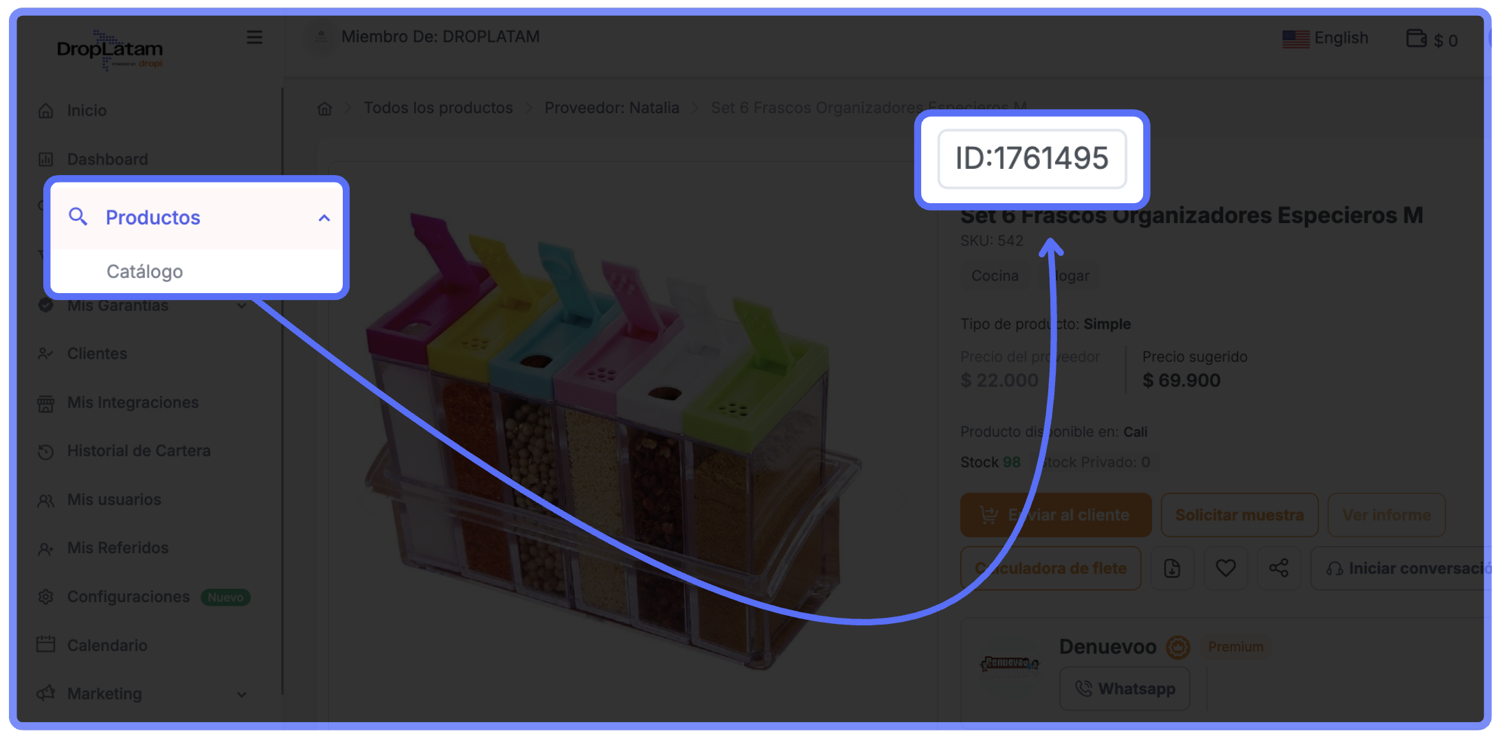 1. Localiza el ID del producto en DropLatam