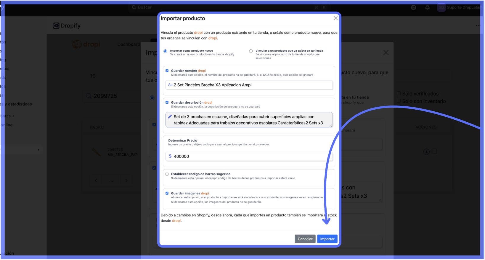 Etapa 2 — Vincula el producto DropLatam al producto de Shopify