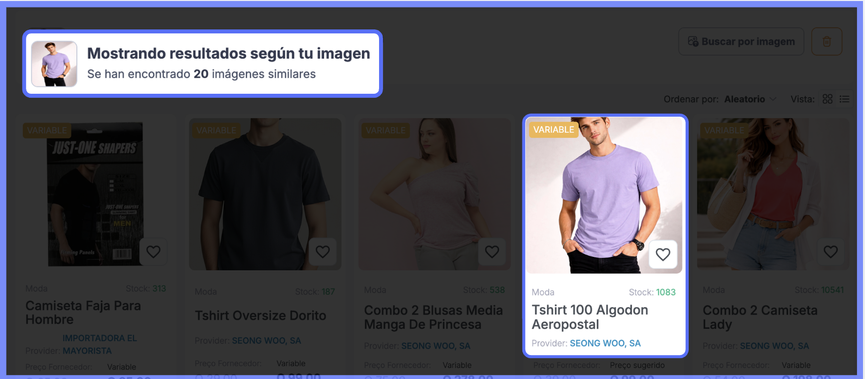La plataforma mostrará los productos disponibles iguales o similares a la imagen enviada. (Imagen 5)
