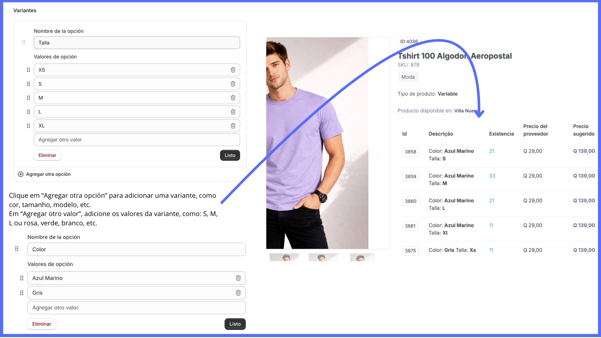- Asocia cada una a las variantes correspondientes ya existentes en el producto de la tienda