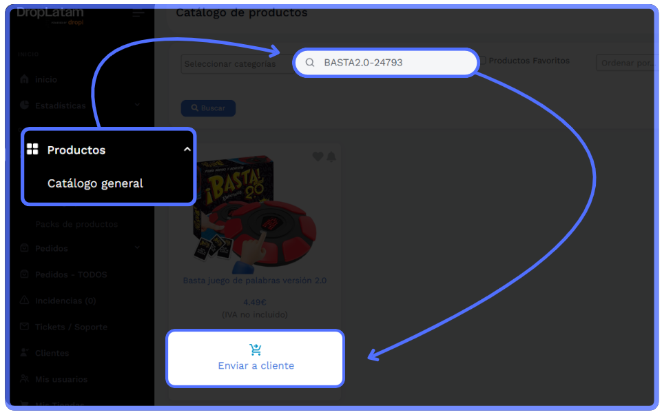 Localiza el producto y haz clic en "Enviar al cliente"
