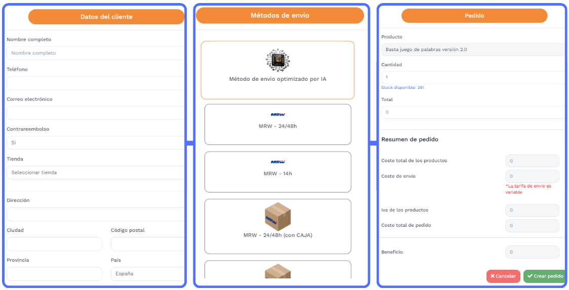 ¿Cómo crear el pedido?