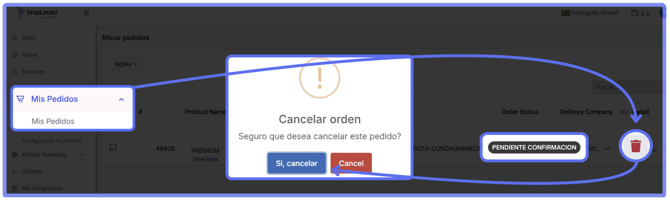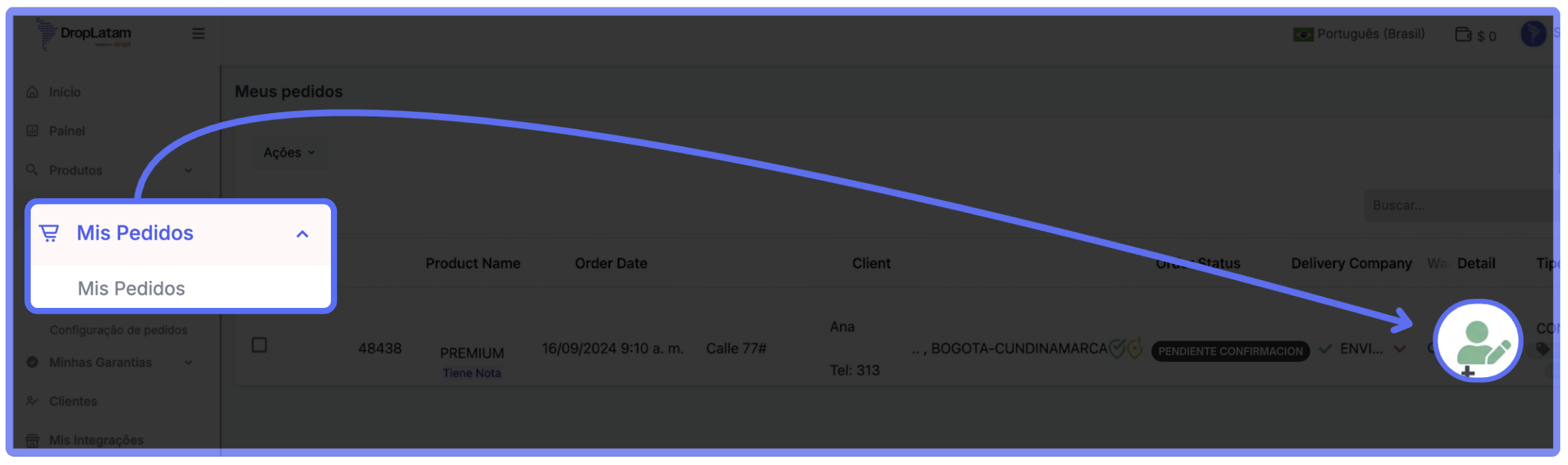 - Ve a Mis Pedidos en la plataforma DropLatam y localiza el pedido