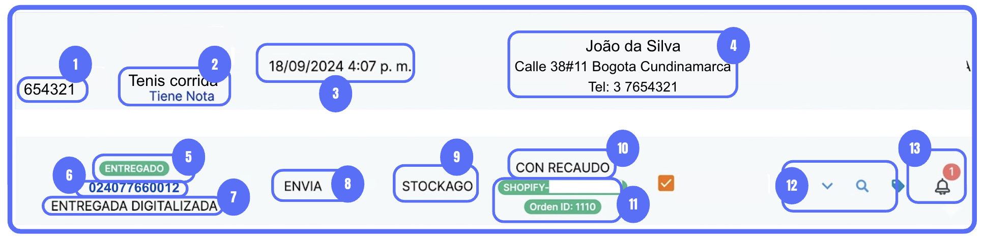 | 12 | Detalle del pedido | Íconos para visualizar información adicional del pedido |