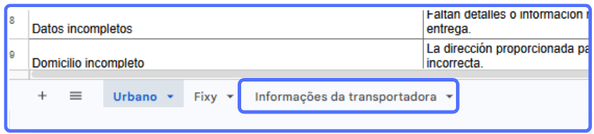 La planilla está organizada por transportadora y separada entre estados y novedad — haz clic en la pestaña deseada para visualizar.