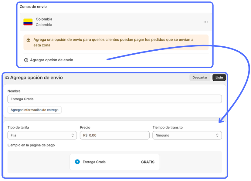 | Nombre | Un nombre descriptivo, como Tarifa gratis, Entrega gratis o Envío gratis |