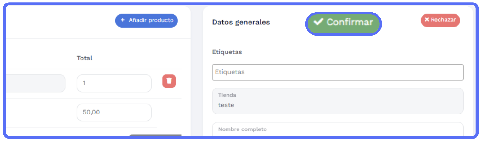 Haz clic en "Confirmar" en la esquina superior derecha para reenviar el pedido