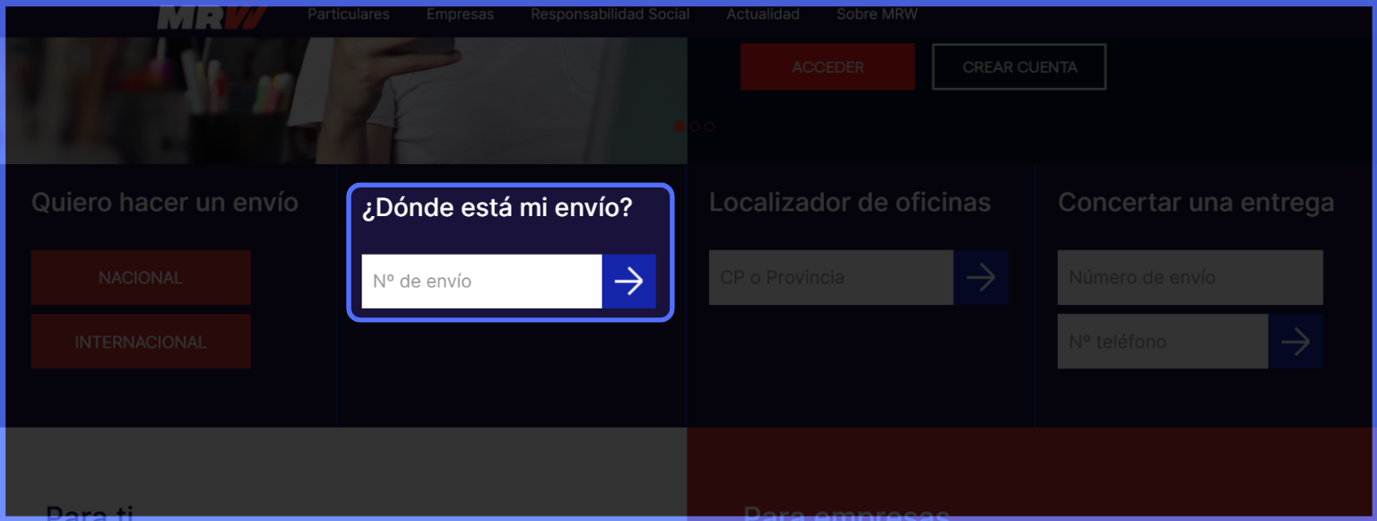 En la página de inicio, localiza la sección "¿Dónde está mi envío?" y pega el número de guía en el campo "N.º de envío"