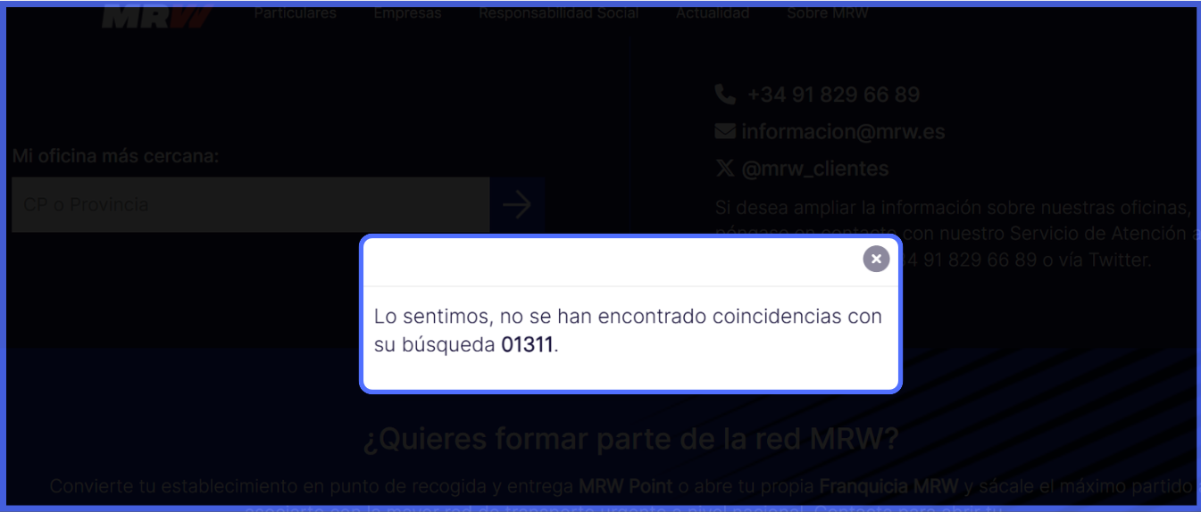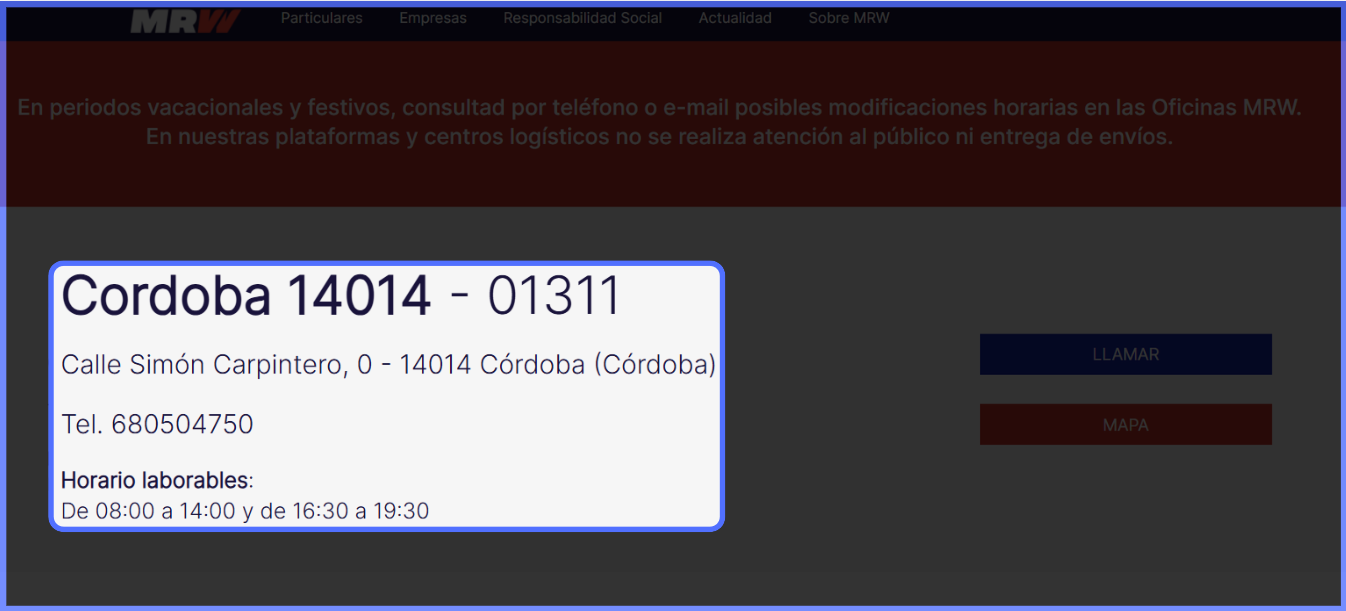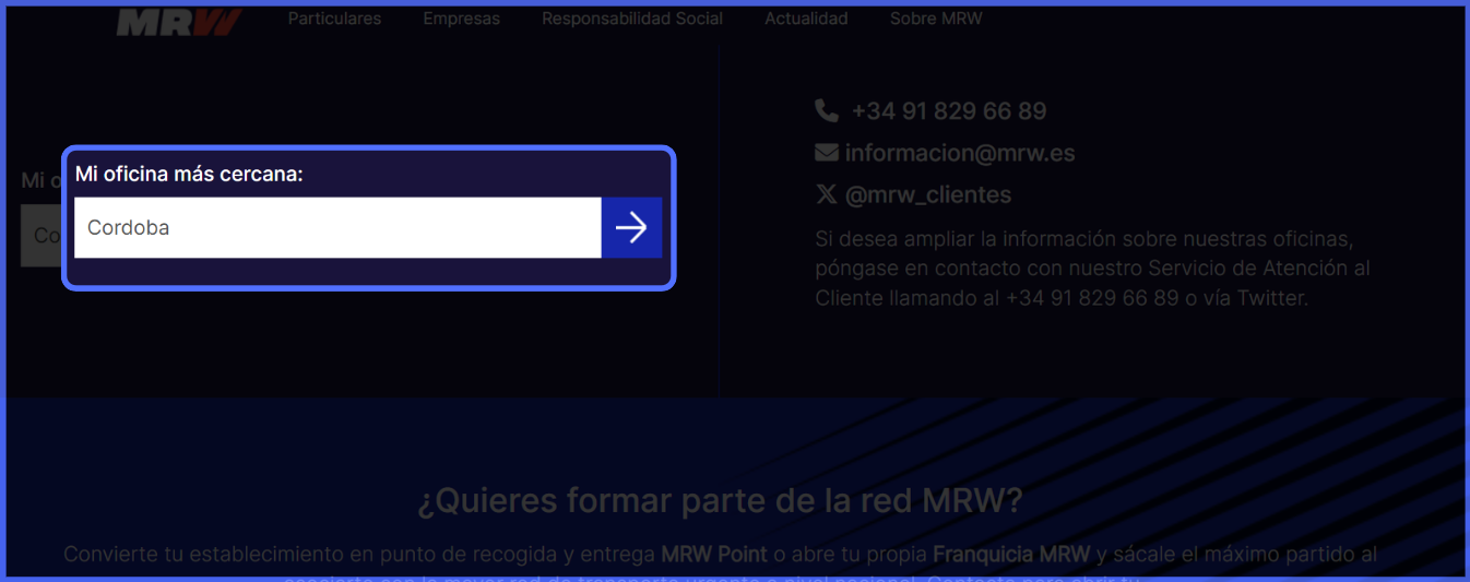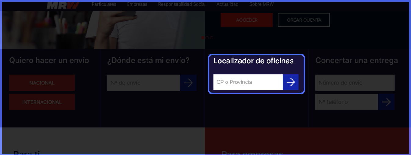 Vuelve a la página de inicio de MRW y haz clic en "Localizador de oficinas"