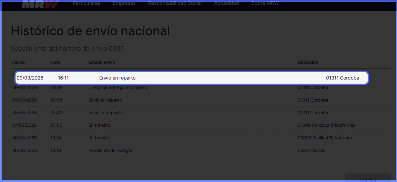 ¿Cómo rastrear pedidos enviados por MRW en España? Para rastrear pedidos enviados por la transportadora MRW en España, deberás consultar el sitio oficial de la empresa (mrw.es). Como su sistema tiene bloqueos regionales, los accesos originados fuera de España pueden ser bloqueados. Sigue los pasos a continuación para localizar la agencia exacta donde se encuentra el pedido de tu cliente.