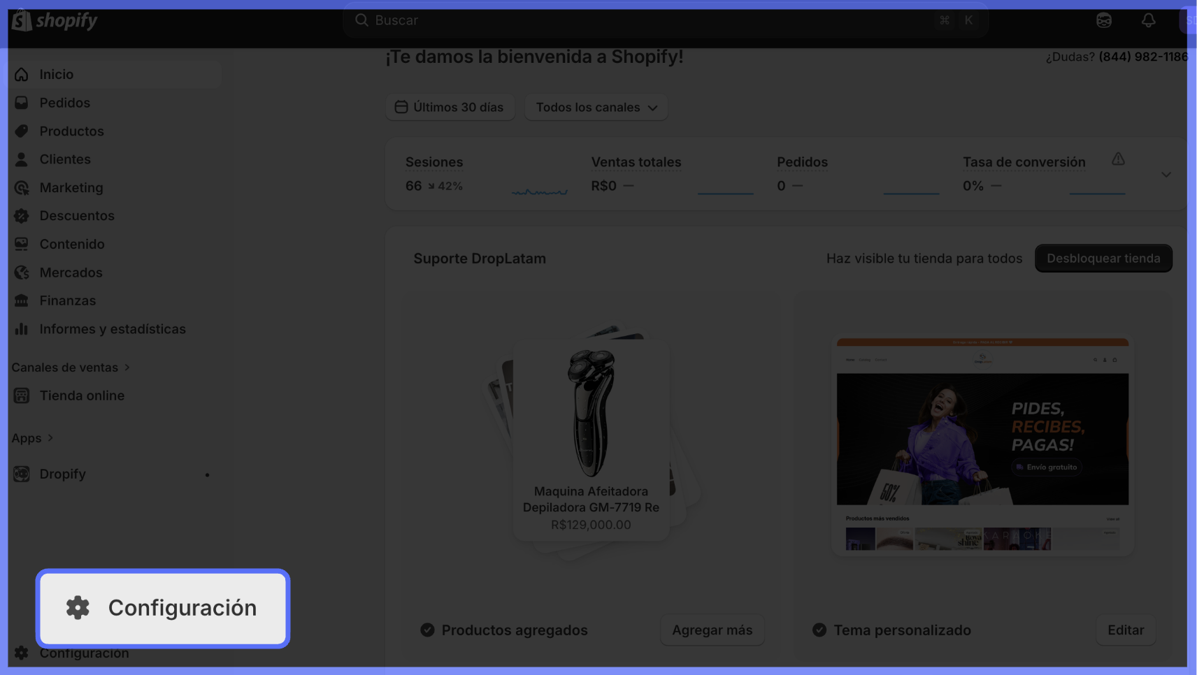 ¿Aún con dudas o dificultades? Consulta el Portal de Ayuda de Shopify o contacta al Soporte DropLatam.