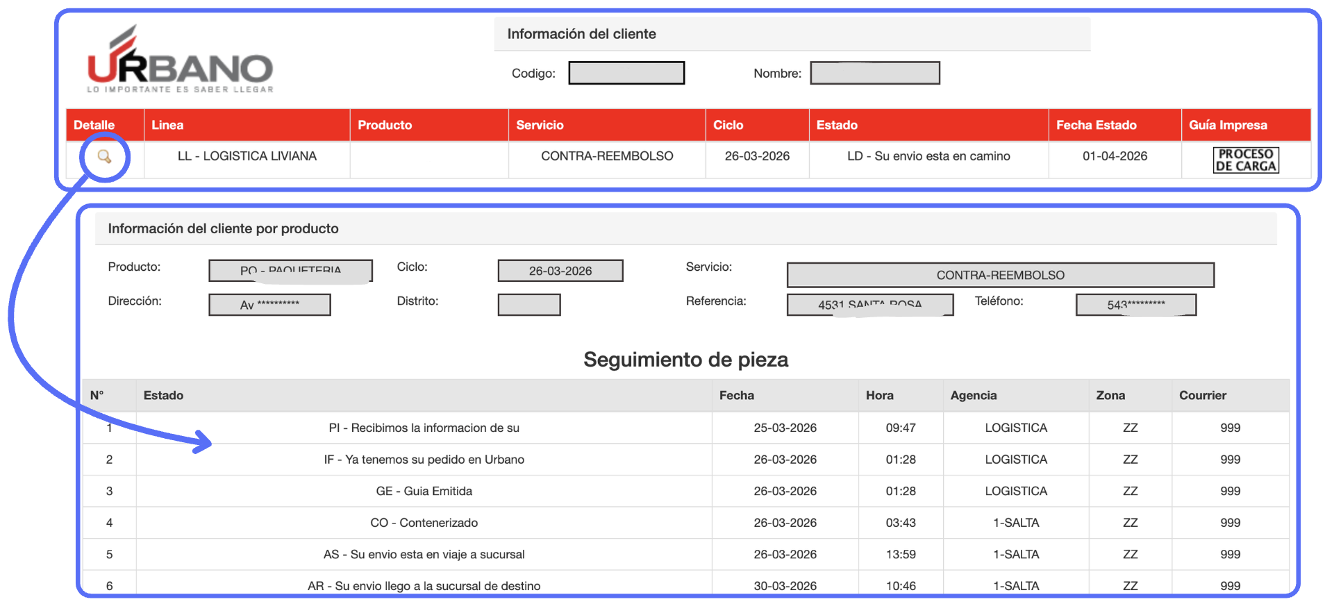 - Haz clic en el ícono de la lupa para ver todos los detalles del envío (Imagen 3)